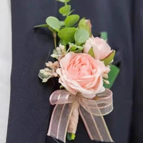 [花 语]:粉玫瑰胸花代表开心快乐!商务鲜花、会议用花适合多种喜庆场合!