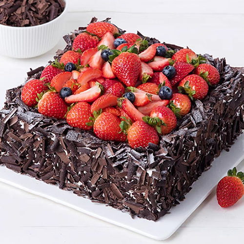 8寸方形鲜奶巧克力蛋糕,巧克力碎片、草莓或时令水果装饰