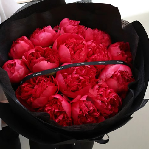 [材 料]:15枝御前表演芍药,黑色丝带装饰