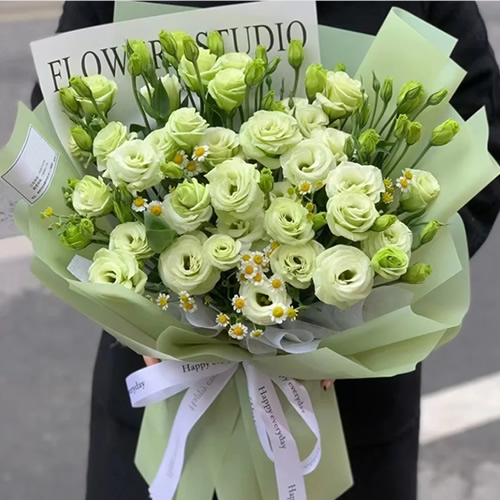 [材 料]:12枝绿色洋桔梗,洋甘菊搭配